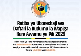 Afisa Mwandikishaji wa Daftari la Kudumu la Wapiga Kura katika Jimbo la Nsimbo ameeleza kuwa Daftari la Awali la Wapiga Kura la Awamu ya Kwanza litawekwa wazi kuanzia kuanzia tarehe 29 Aprili 2025kwa ...