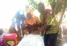 Pichani:Mkuu wa Mkoa wa Katavi Mh.Mwanamvua Hoza Mrindoko(Katikati) akikabidhi Zawadi mbalimbali kwa niaba ya Waziri Mkuu wa Jamhuri ya Muungano wa Tanzania Mh.Kasim Majaliwa kwa Uongozi wa Kituo cha ...